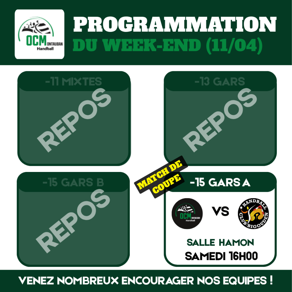 đȘ Venez nombreux les encourager pour ce match important !