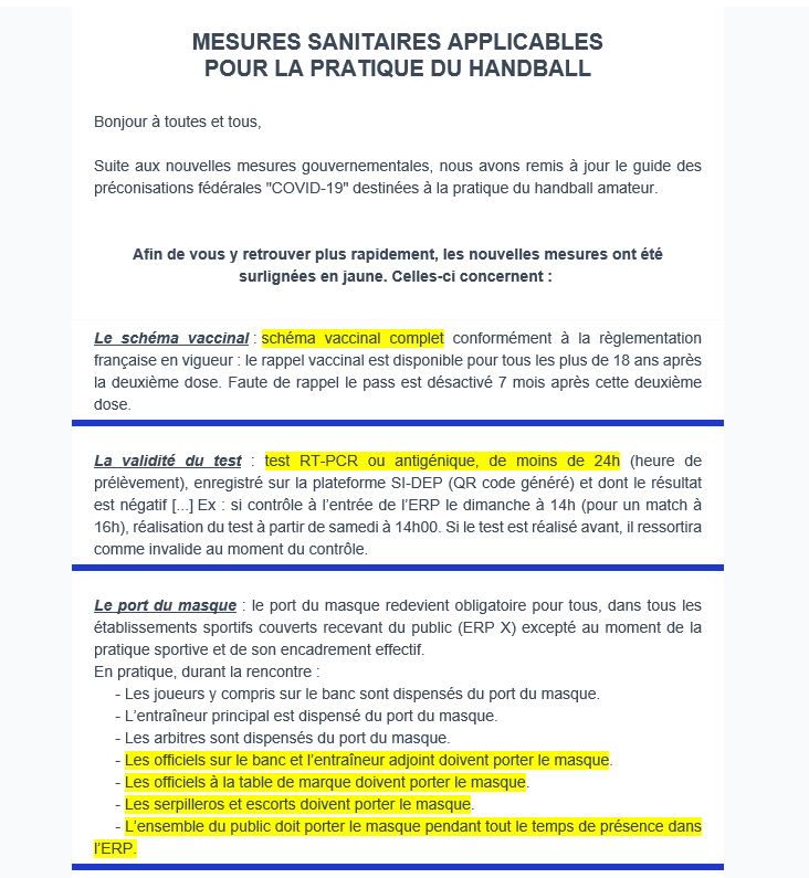 Prévoir une tenue adaptée à la pratique du handball et une bouteille d’eau.