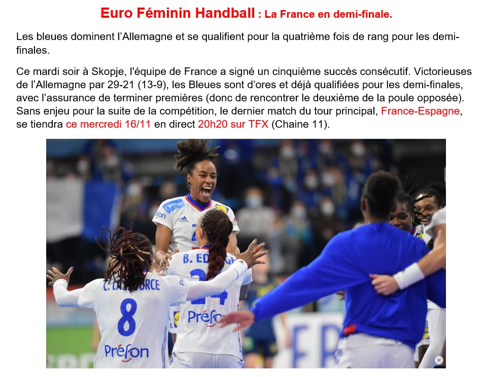 Match championnat d’Europe sur la chaine (TNT 21) L’Equipe 20h45