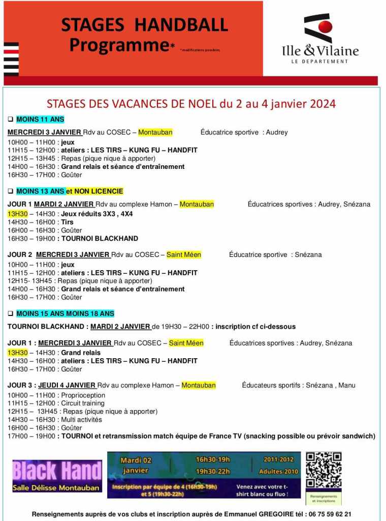 Le 2 janvier, l’Office des sports saint Méen Montauban organise le « black hand ».