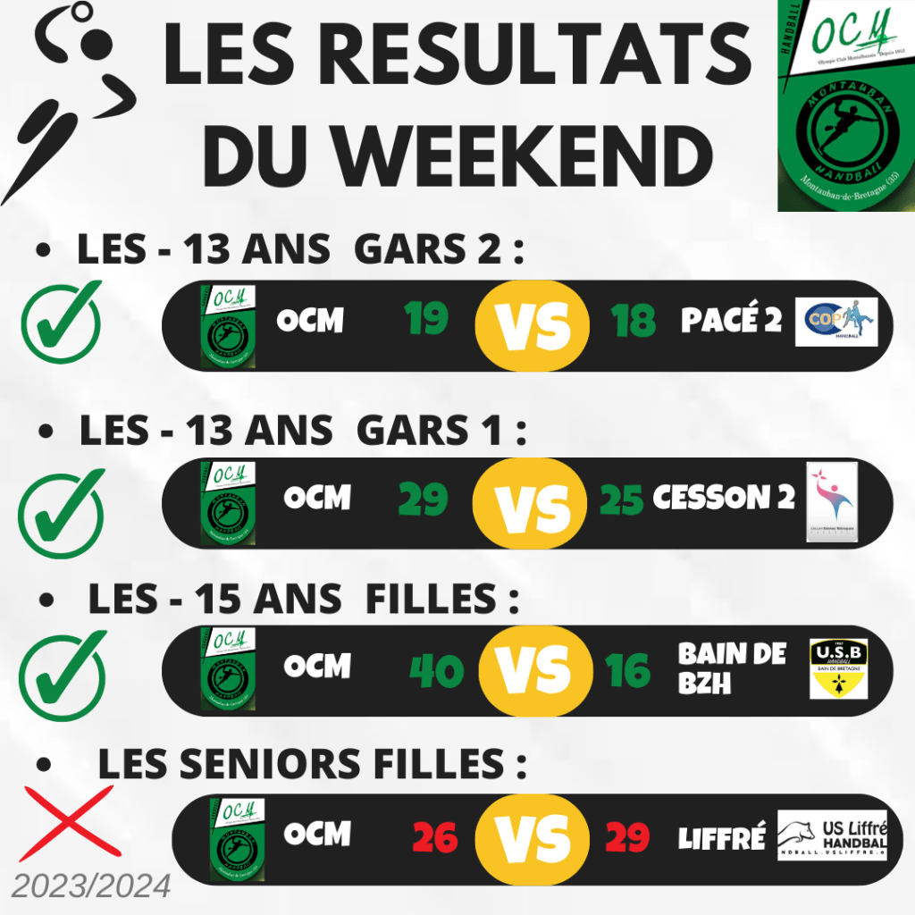 Voici un petit retour sur les résultats du week-end dernier !