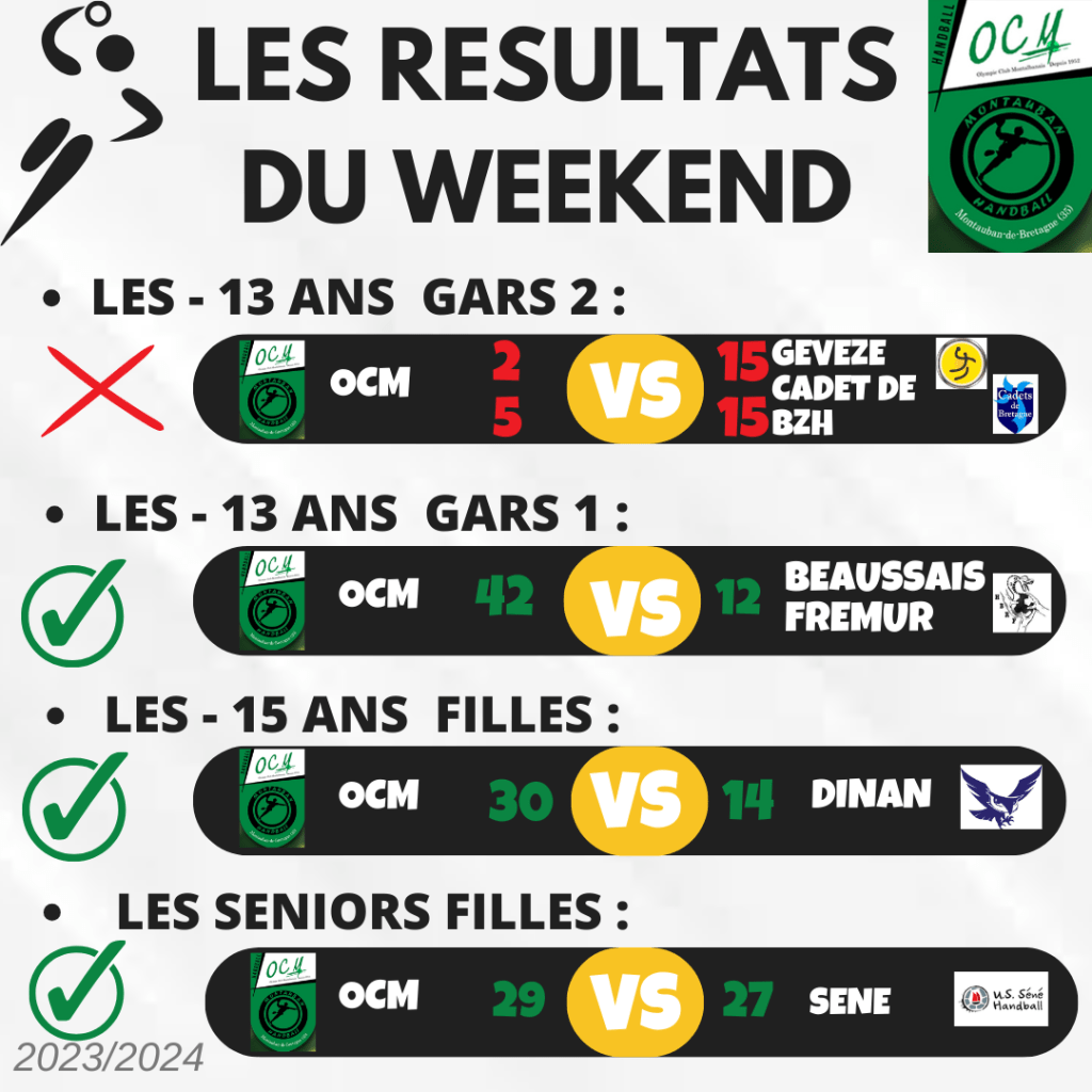 Voici les résultats du week-end. Bravo aux -15 filles pour le match de coupe !