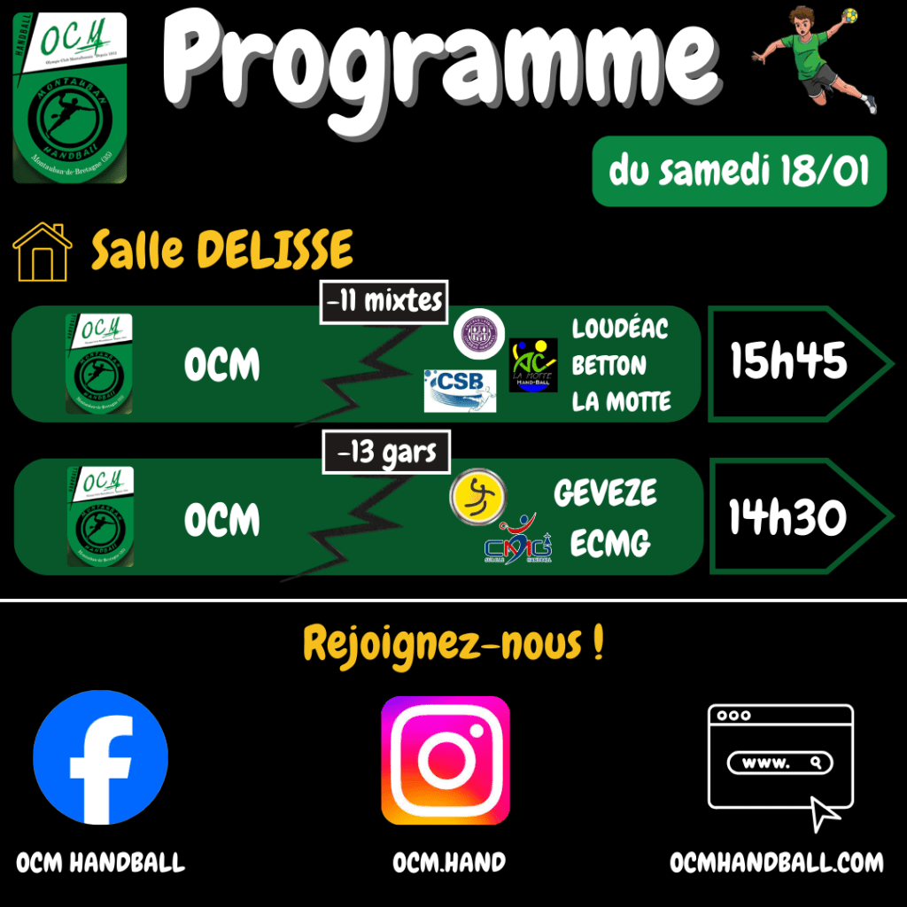 Voici le programme de ce week-end ! 🟢⚪🤾♂️