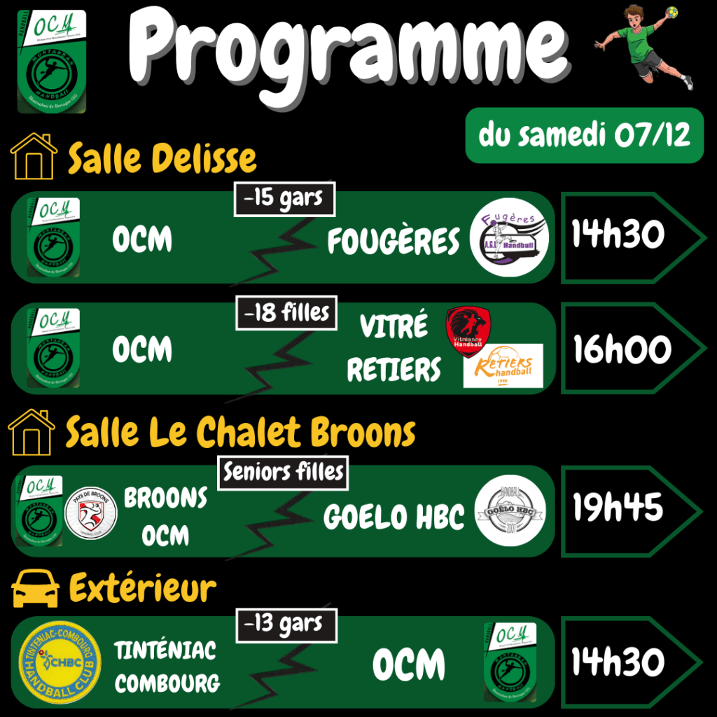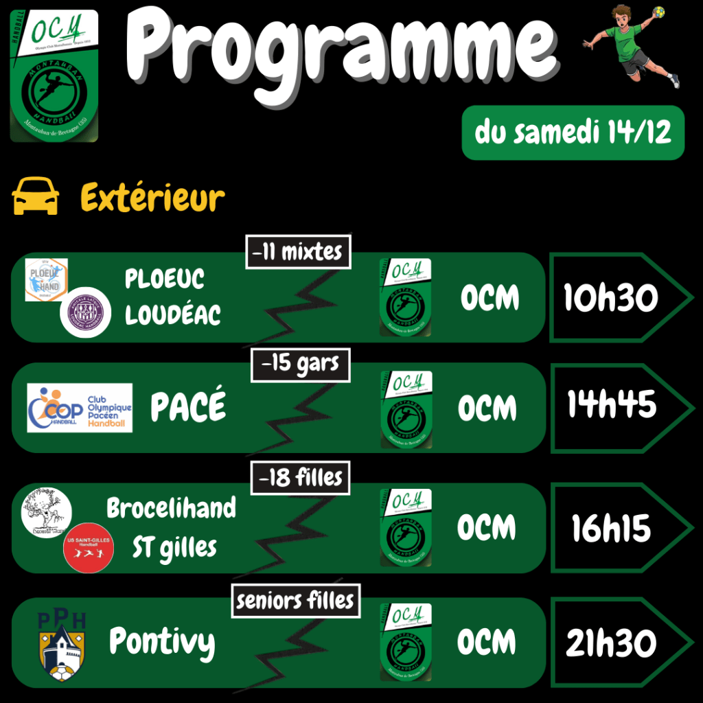 Voici le programme de ce week-end ! 🟢⚪🤾♂️