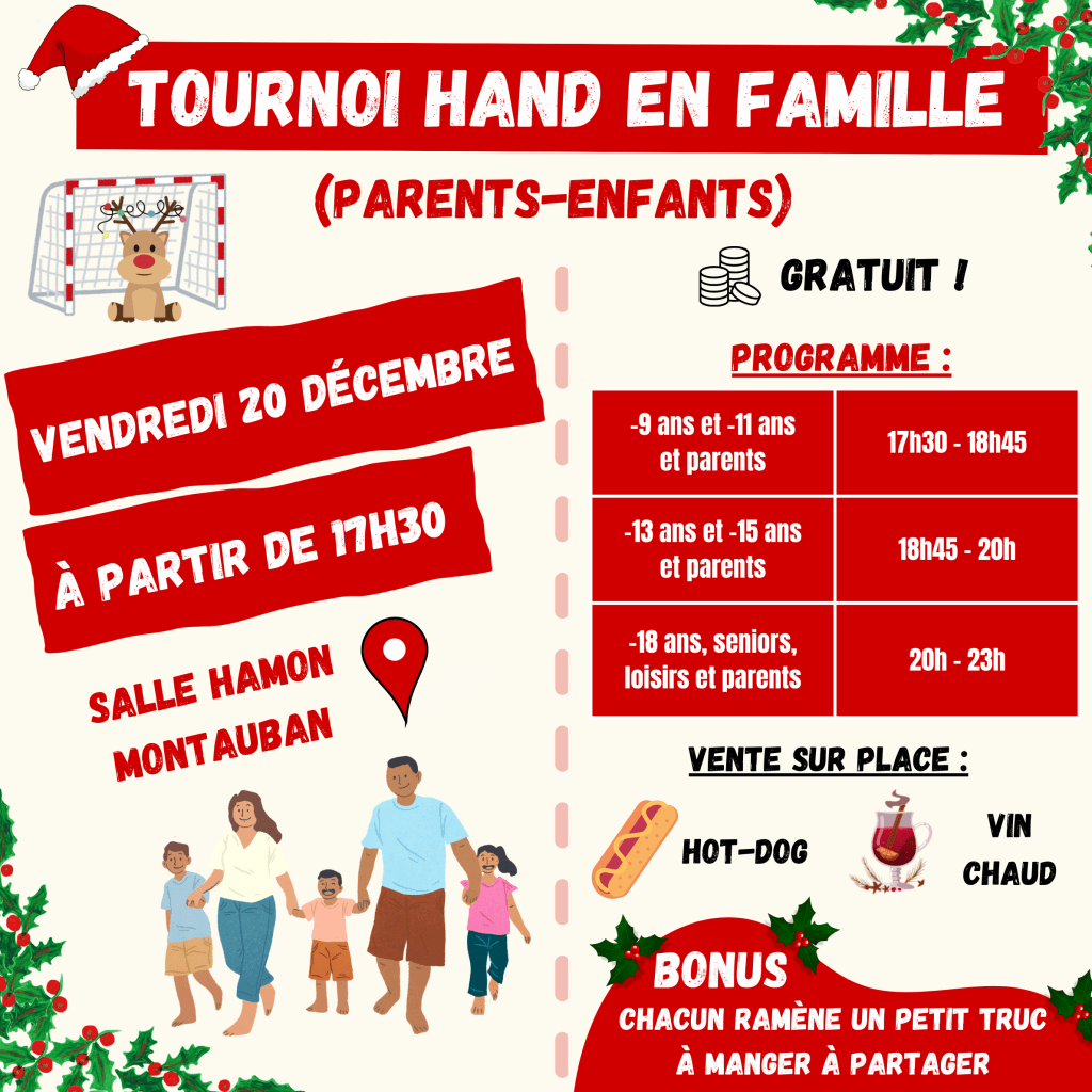 Nous sommes ravis de vous inviter à notre tournoi de fin d’année, un moment de partage et de convivialité destiné à toutes les familles de nos joueurs et joueuses !