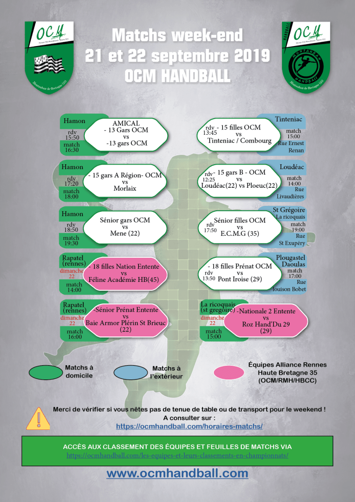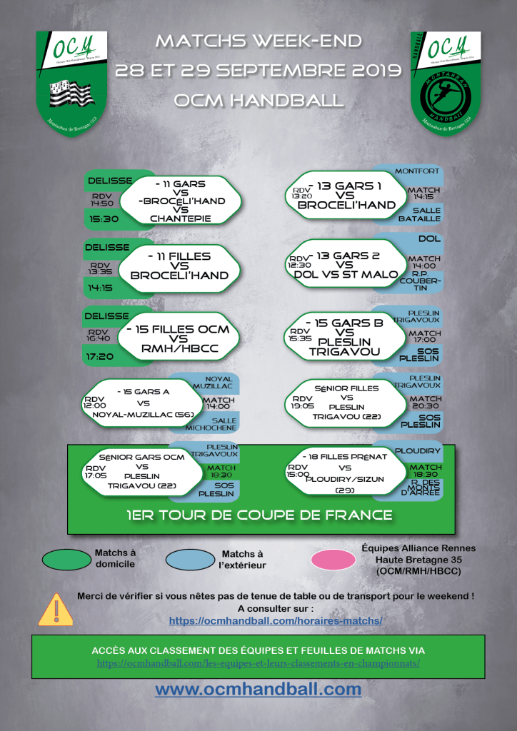 Toutes les infos sont à lire sur la page dédiée « calendriers équipes OCM HANDBALL 2020 »
