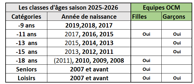 F – Catégories d’équipes par classe d’âge saison 2025-2026