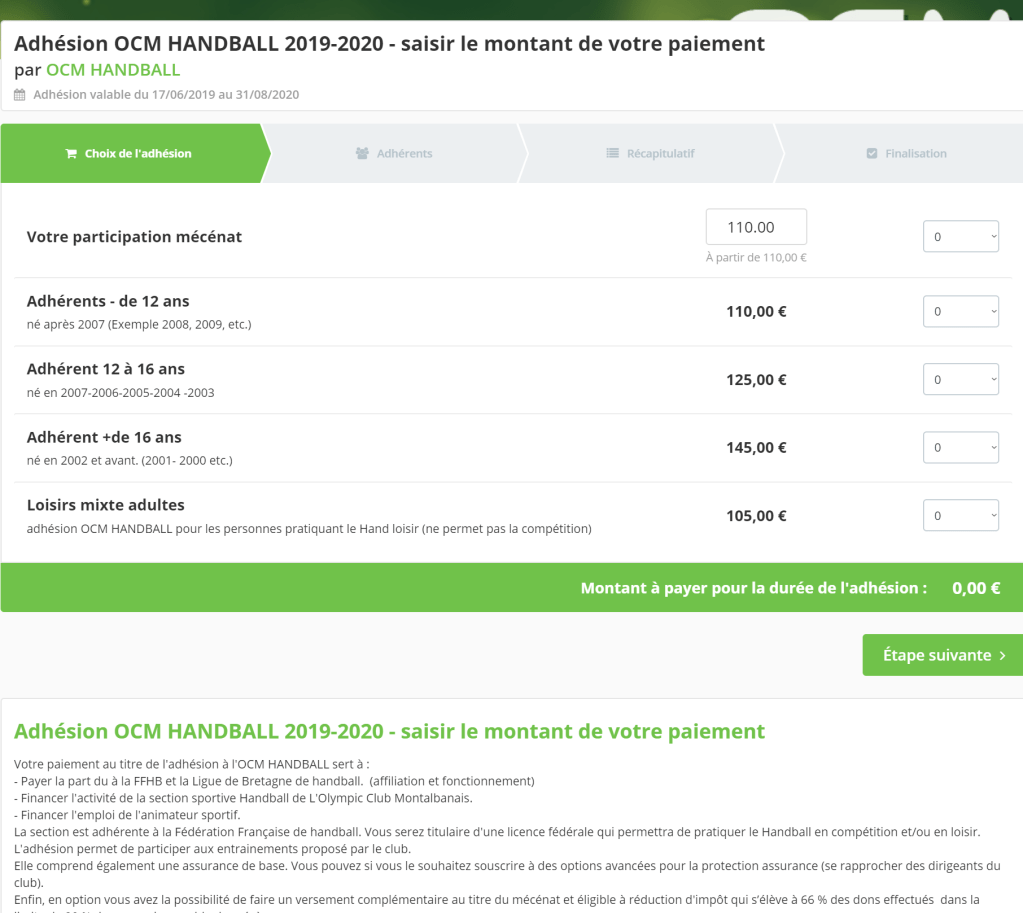 PAIEMENT EN LIGNE ADHÉSION OCM HANDBALL RENOUVELLEMENT